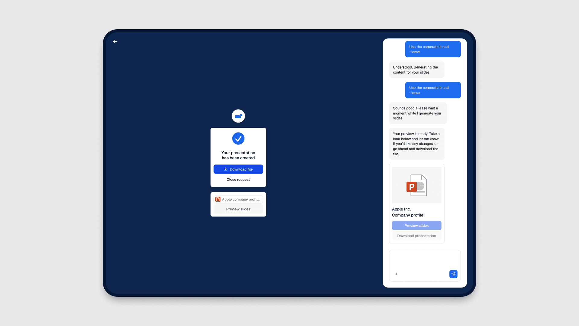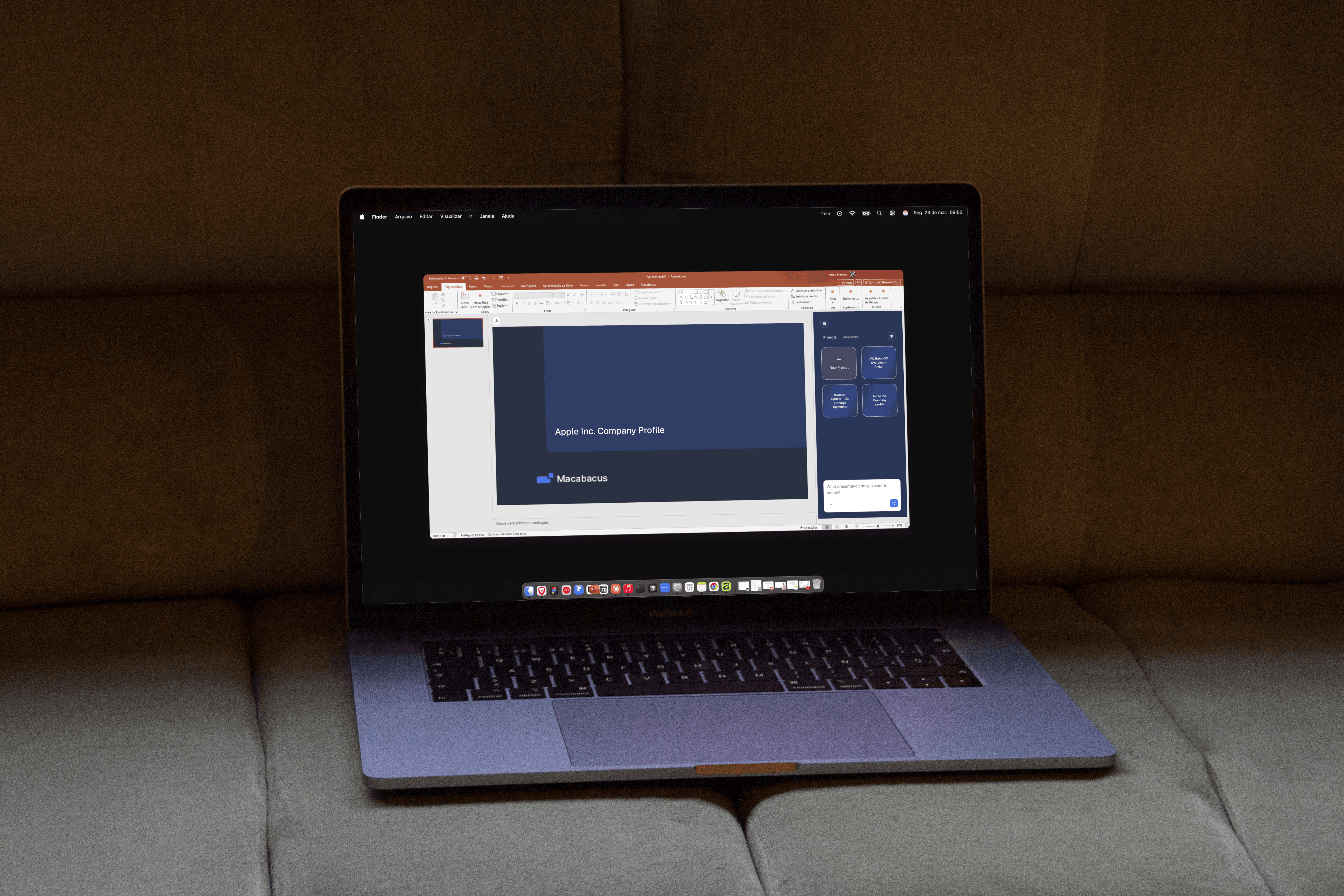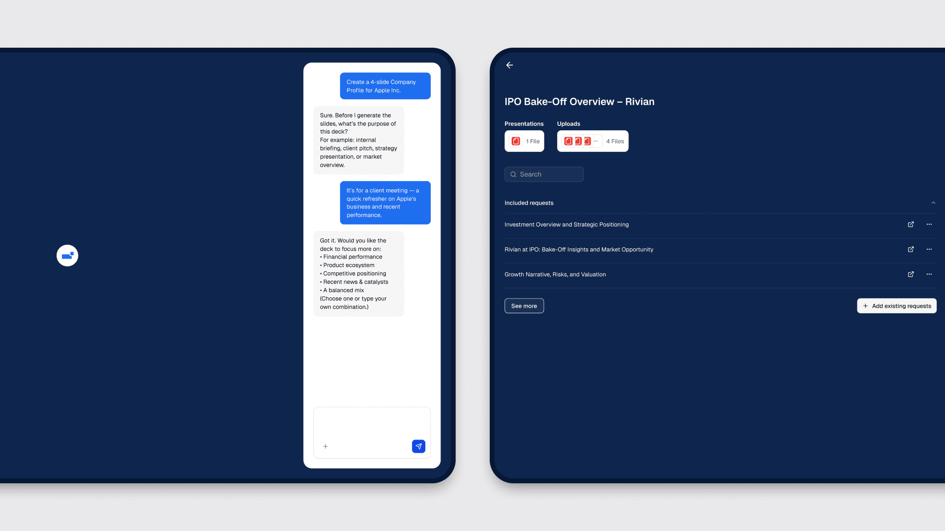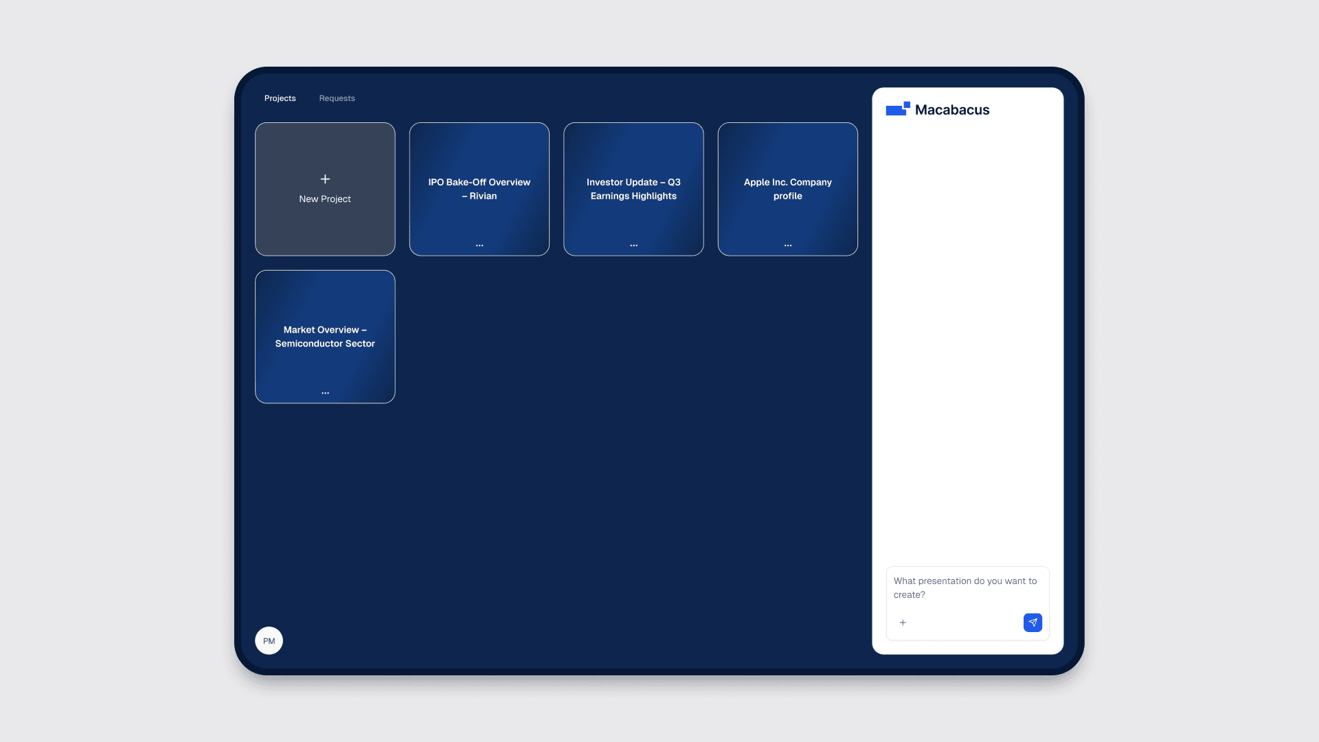 Macabacus is a web-based product designed to generate financial presentation slides with AI. It supports the full workflow from inputting a brief and key assumptions to producing a structured deck, with controls for reviewing, editing, and regenerating presentations. The project focused on improving the clarity and reliability of core flows such as request setup, slide creation, versioning, preview, and export, ensuring outputs are consistent and suitable for professional use.