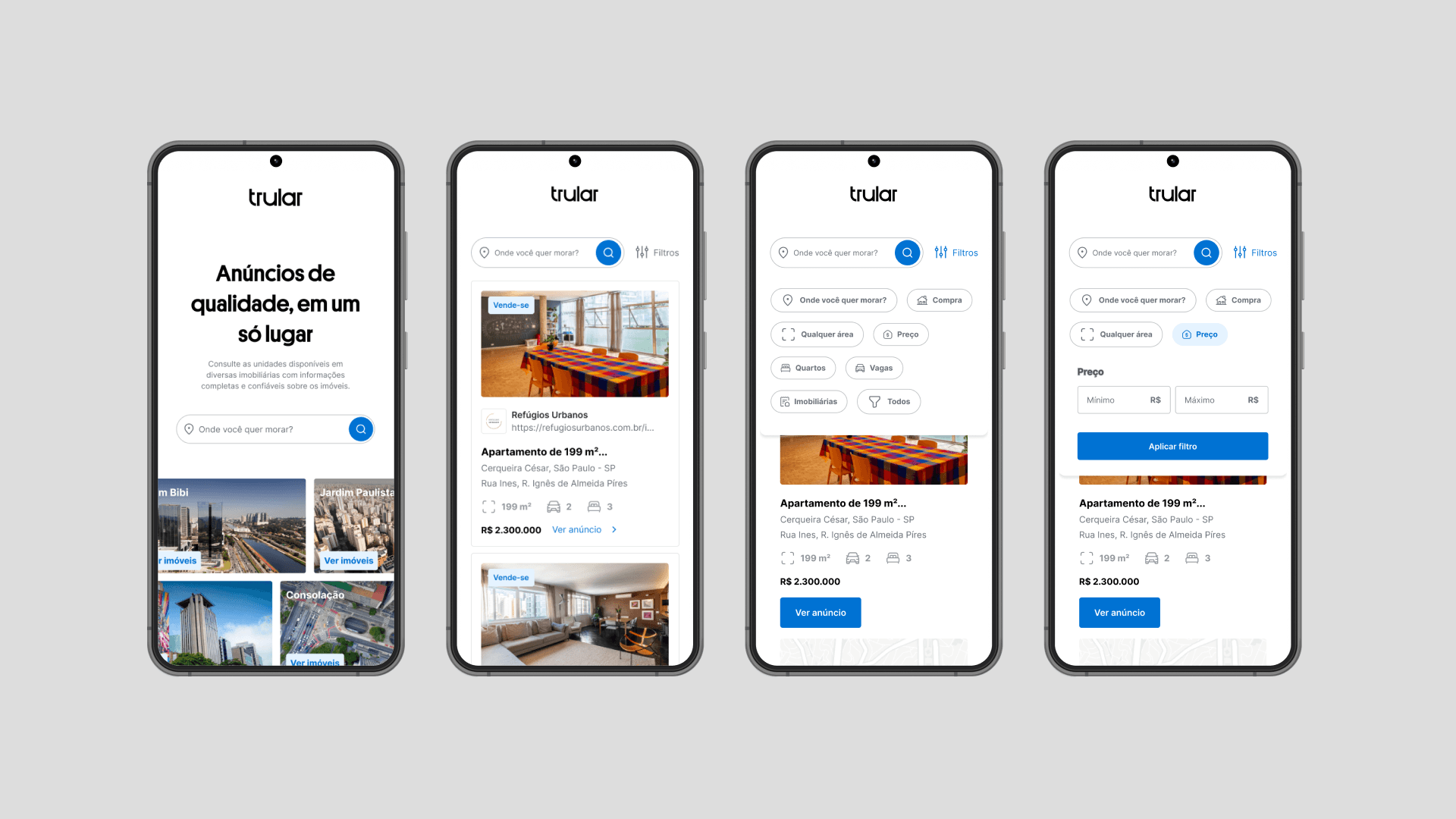 The Trular project built a home-search website from scratch for an early-stage startup, designed to feel like a “Google for buyers” with clear pricing. We centralized listings from multiple real estate brokers, added fast search and filters, and created a simple journey from query to property selection and broker redirection in about three months.